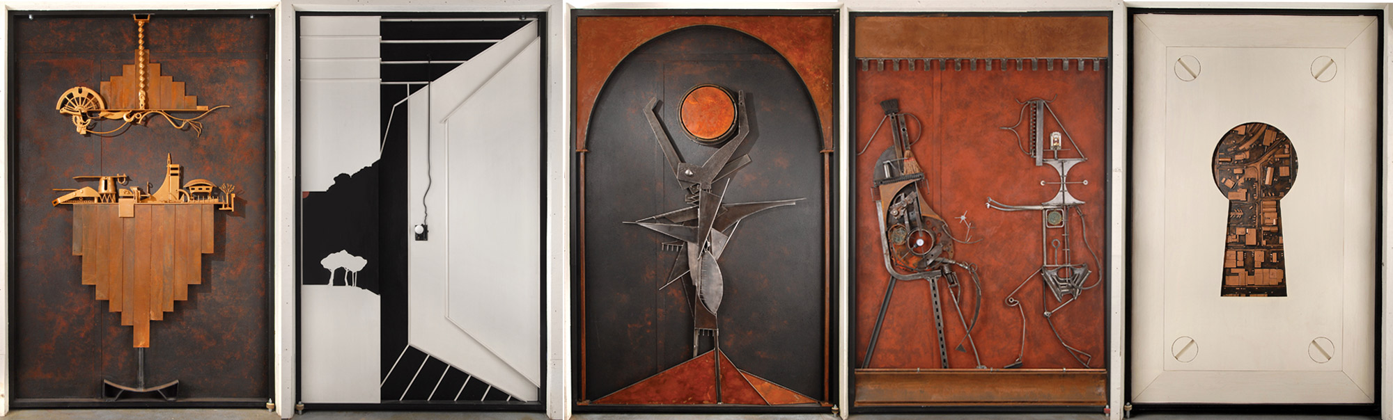 That appreciation begins the moment you enter and are greeted by the gallery’s oldest original artwork: a collection of massive six-by-nine-foot pieces, embellished with stories in the form of metal work and found materials. These are the renowned studio doors, each of which glides open to unveil one of 16 individual studios.